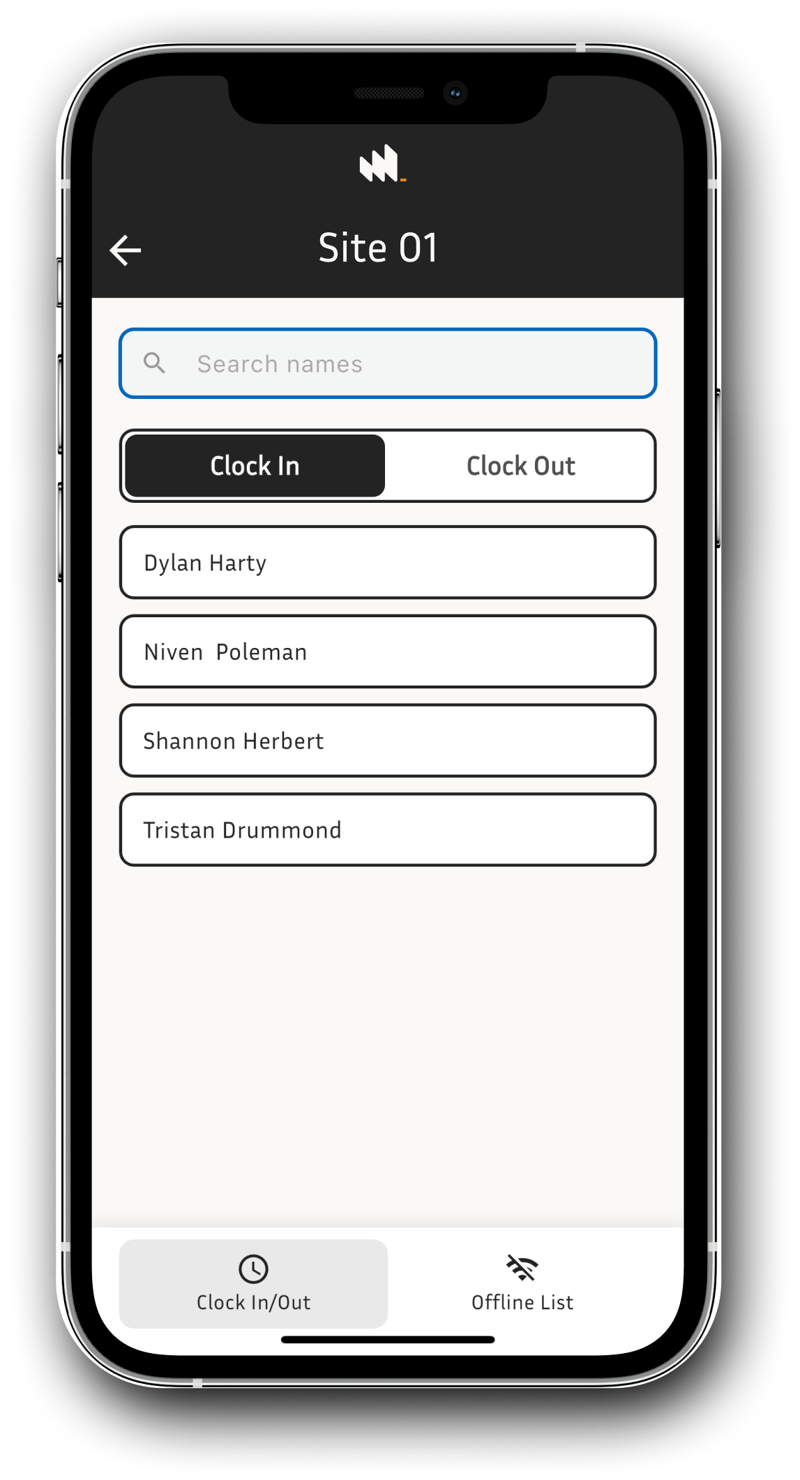 One app on a trusted device clocks everyone on site